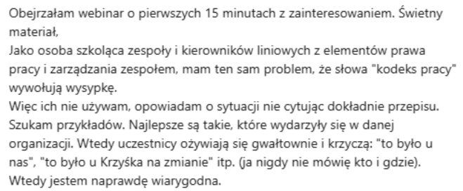 Wprowadzam storytelling i metody uczenia się dorosłych, by szkolenie było rozmową, doświadczeniem i momentem refleksji.